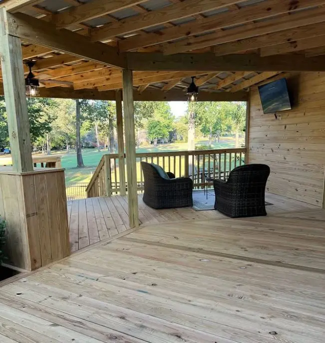 Custom outdoor living areas including pergolas, patios, pavilions, and structural enhancements.